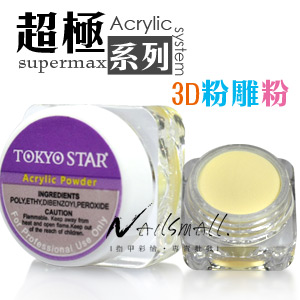 新一代超極沙龍專用3D粉雕粉,粉質更優彈性佳更好塑型,是你的理想首選粉雕粉,本品需配合TOKYO STAR 新一代超極沙龍專用低氣味水晶溶劑使用效果才好的哦!